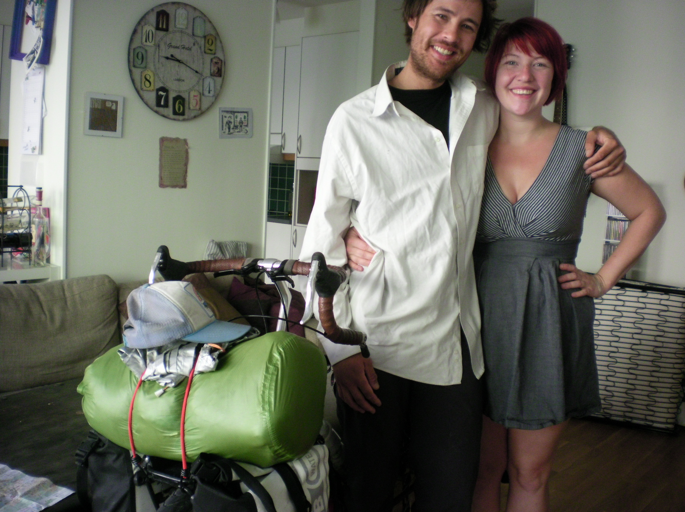 The next morning it rained but my friend Pieter and Kristina offered to help me fix my bike, after a few attempts at welding the decided to fix the bike the “Viking way” using flexibility to establish the utmost strength. After fabricating a few straps out of aluminum gaby is now better than new and can continue to carry heavy loads.