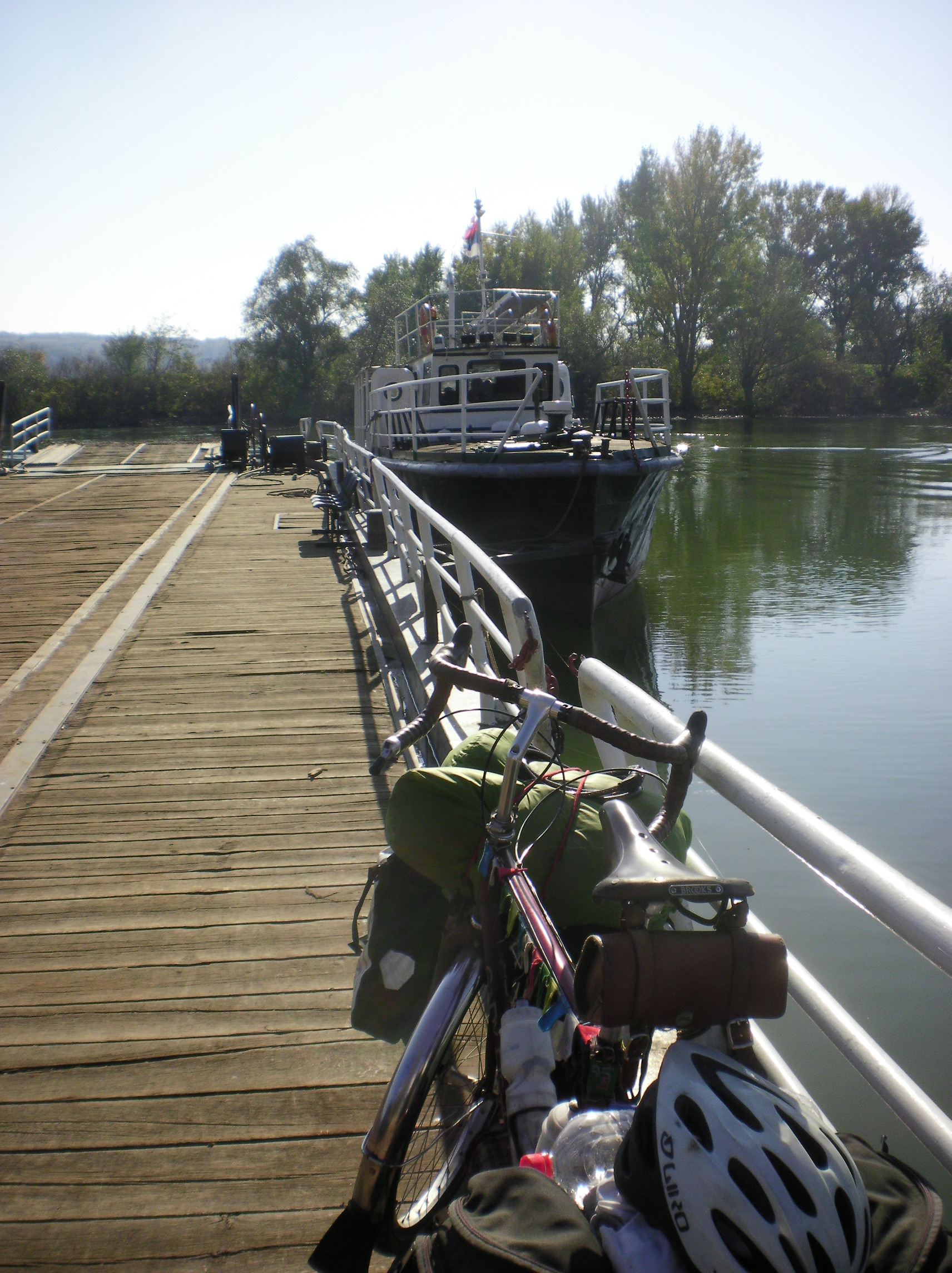 After a breakfast of flat cola and bread, I left the Louisiana like village of Dubovac. The bike path quickly changed from single track, to a full two lane road. The road eventually departed from the Danube, and crossed several orchards and vineyards finally coming to a halt at a small ferry terminal, where I boarded and crossed to the southern side of the river. Departing the ferry I cycled through the small town of Ram, and up a steep hill  past an ancient castle. Rolling hills and Orthodox monasteries, I found a nice camping spot under some plum trees and cooked dinner.