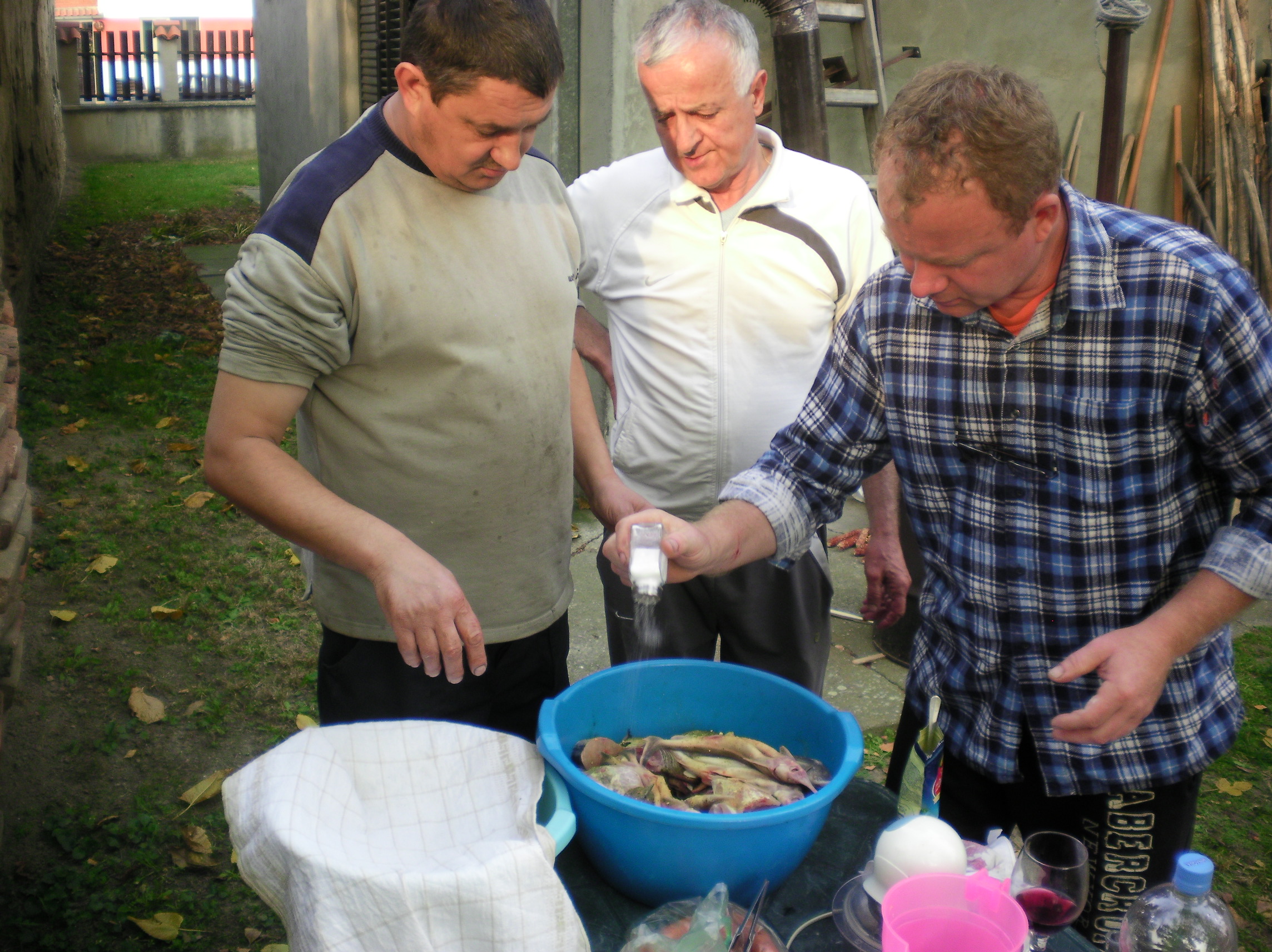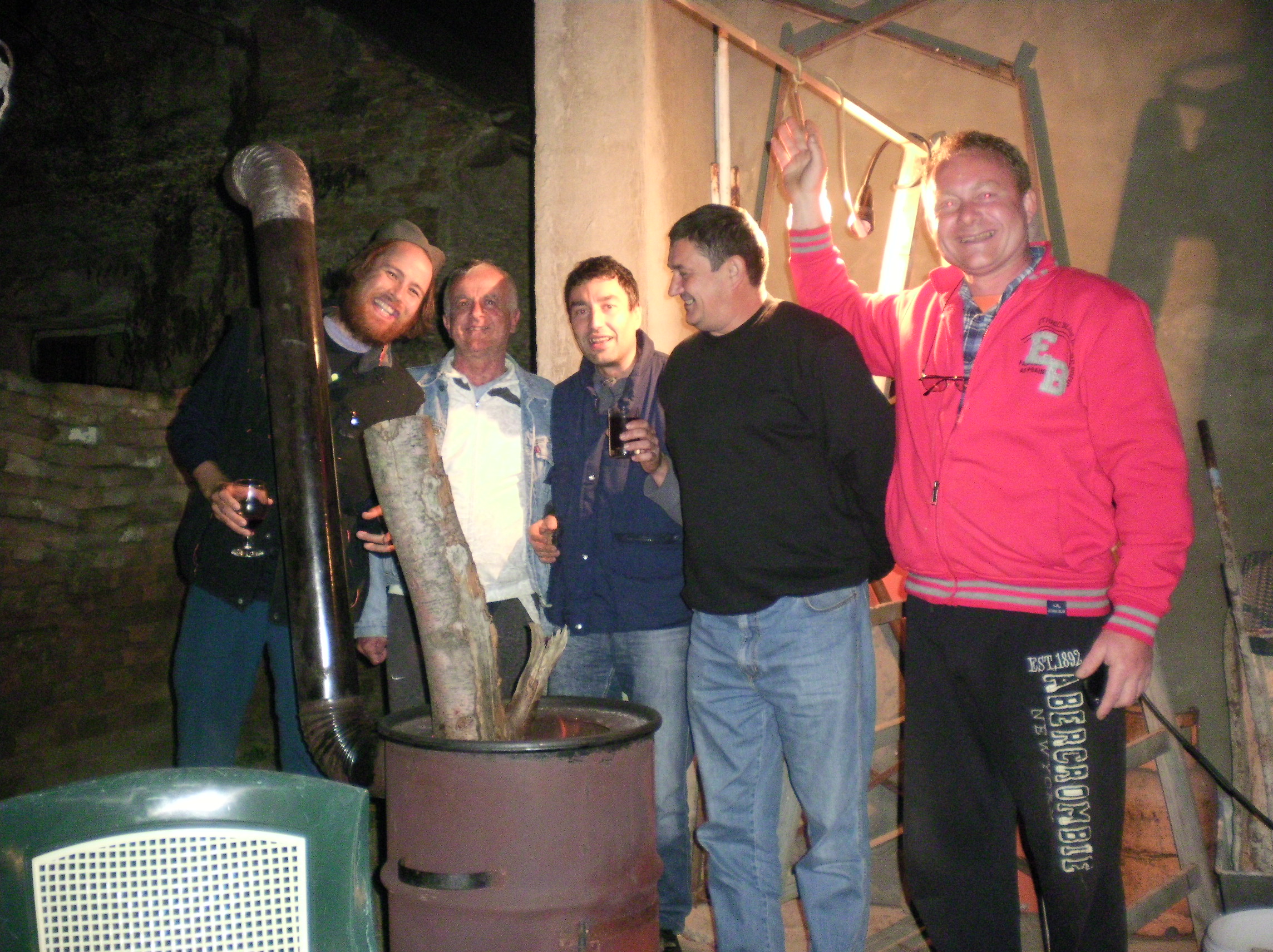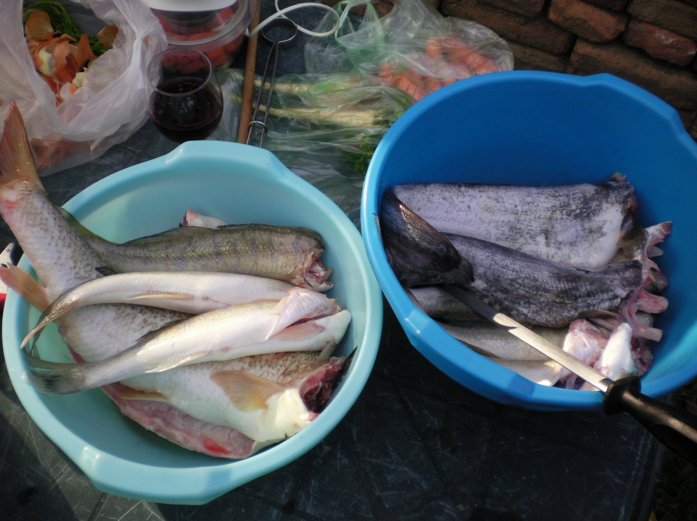 Dragan invited me to stay in his guest house, and I slept peacefully away from the dogs in a cozy bed. The next day, I woke up early for a Serbian breakfast of Coffee and a double shot of Rakia. We then went to the local fisherman to and purchased close to 10 kilograms of fresh fish for the evening festivities. Dragan offers to cook his famous soup on his outdoor stove converted from an  old oil barrel.