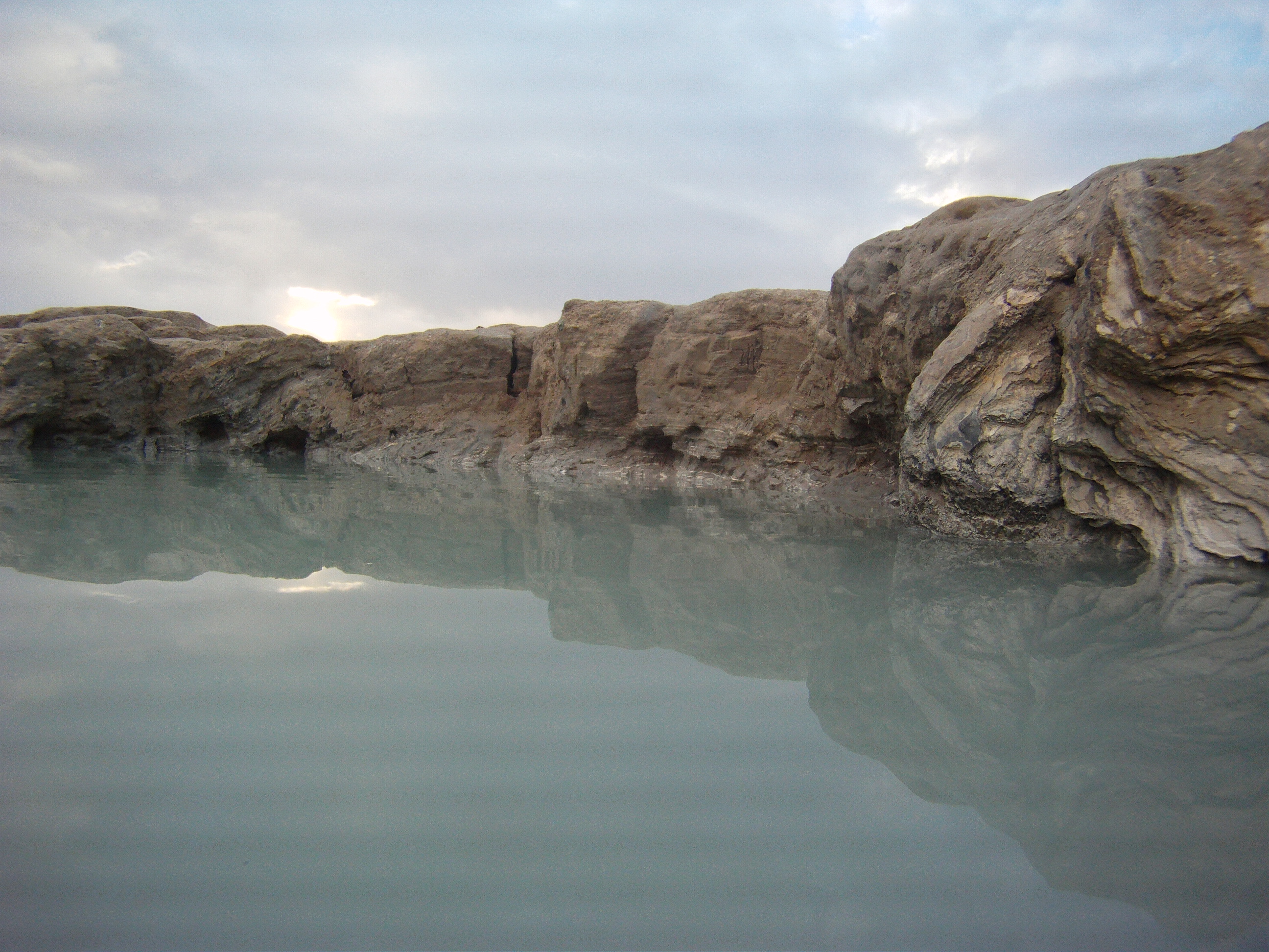 Hiking to the top of Masada, I spent several hours exploring the ancient city and returned to my bicycle to find a nice Bedouin admiring my “smock”. He invited me to dinner with the owner of the restaurant and I spent a nice evening listening to stories of the middle east and central Asia, (I am completely pumped on cycling through Georgia, Azerbaijan, and the Stans). After dinner, Gal, the owner, gave me two large grocery bags and told me to “loot” his buffet and restaurant. I ended up pedaling away from Masada with fresh pomegranates, grape fruit, curried potatoes, sweet rice, bread and humus. Thanks Gal! I pedaled to a local hangout on the dead sea, and soaked in hot springs and floated in the saturated waters of the sea. What a strange feeling being in the Dead Sea, I felt like I was the oil in a salad dressing mixture, never really able to mix with the water. When floating, I felt like I was sitting in a bean bag chair, or lying in a recliner chair. The beach had more salt than sand, and while walking to the deep sections of the sea I discovered islands of salt in the shallow waters near the shore. Cutting your feet on sharp salt rocks hurts!! The water was cool but lacked any sense of refreshment.  The hot springs were just as salty as the sea, but the warmth felt better on my skin. At 400 meters below sea level, I was too far from the sun to get burned. Without any fresh water to rinse off I was covered in a thin layer of salt for the next few days.