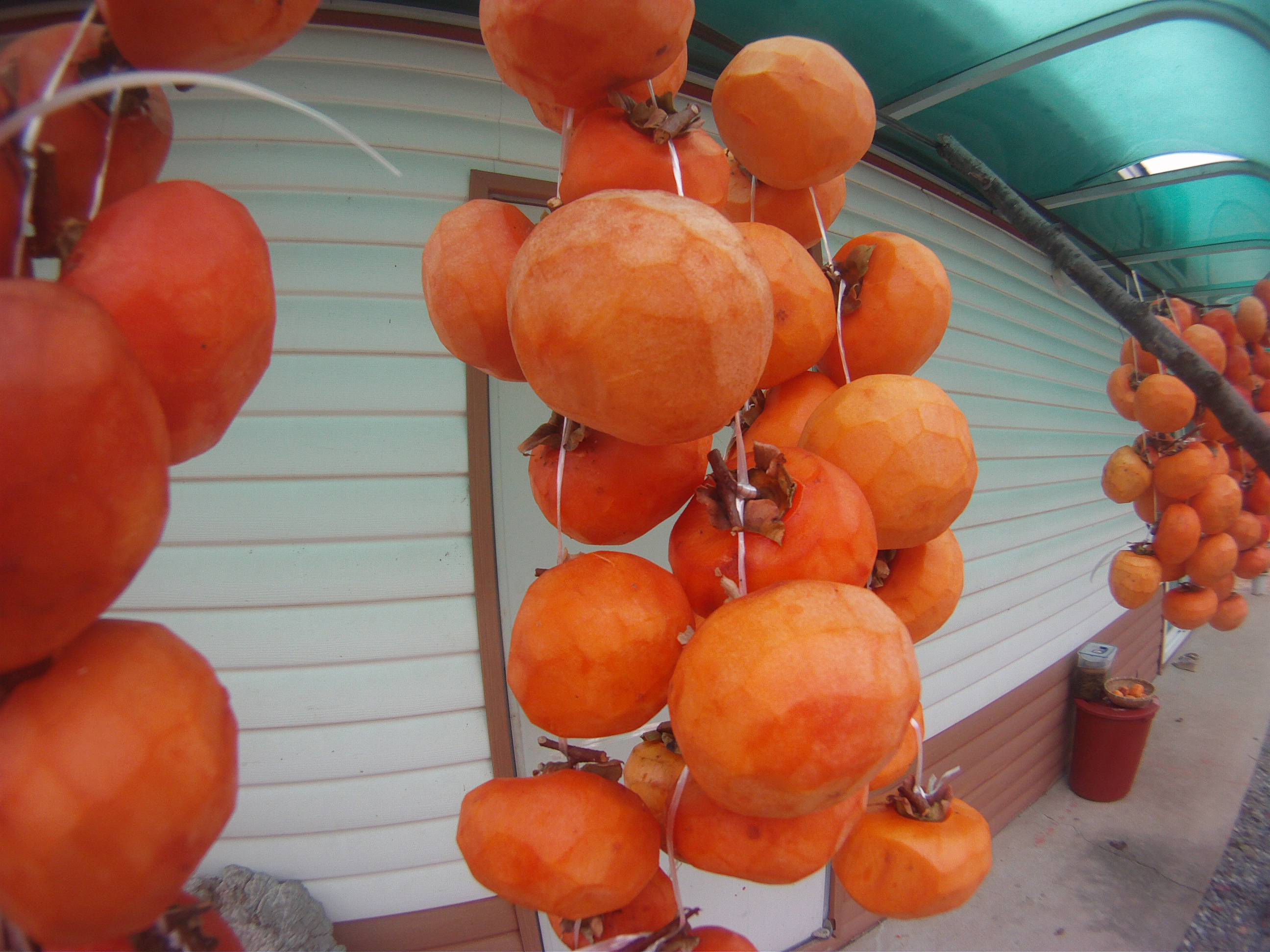 Skinned persimmons drying in the sun, these decorated the front porches of many in the interior regions.