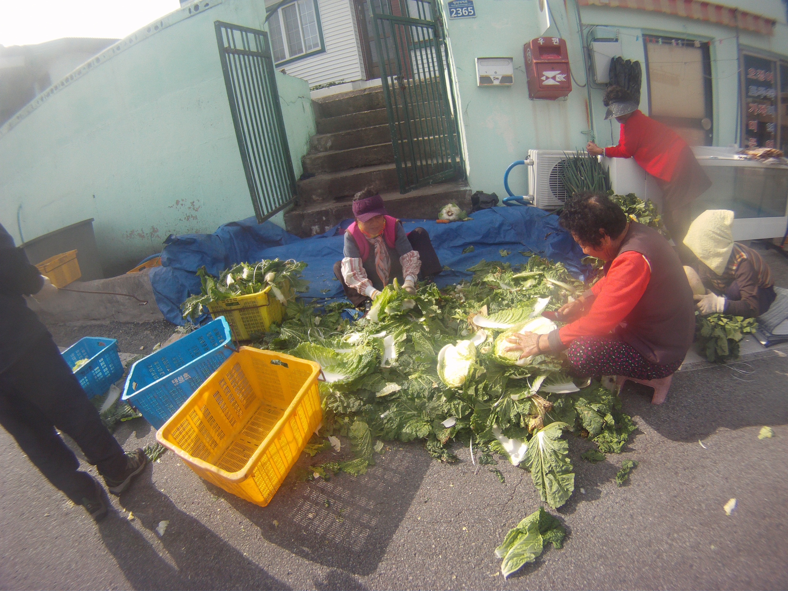 Two huge batches of Napa cabbage. The cabbage will sit with other ingredients for over 3 months before fermenting and becoming Kimchi