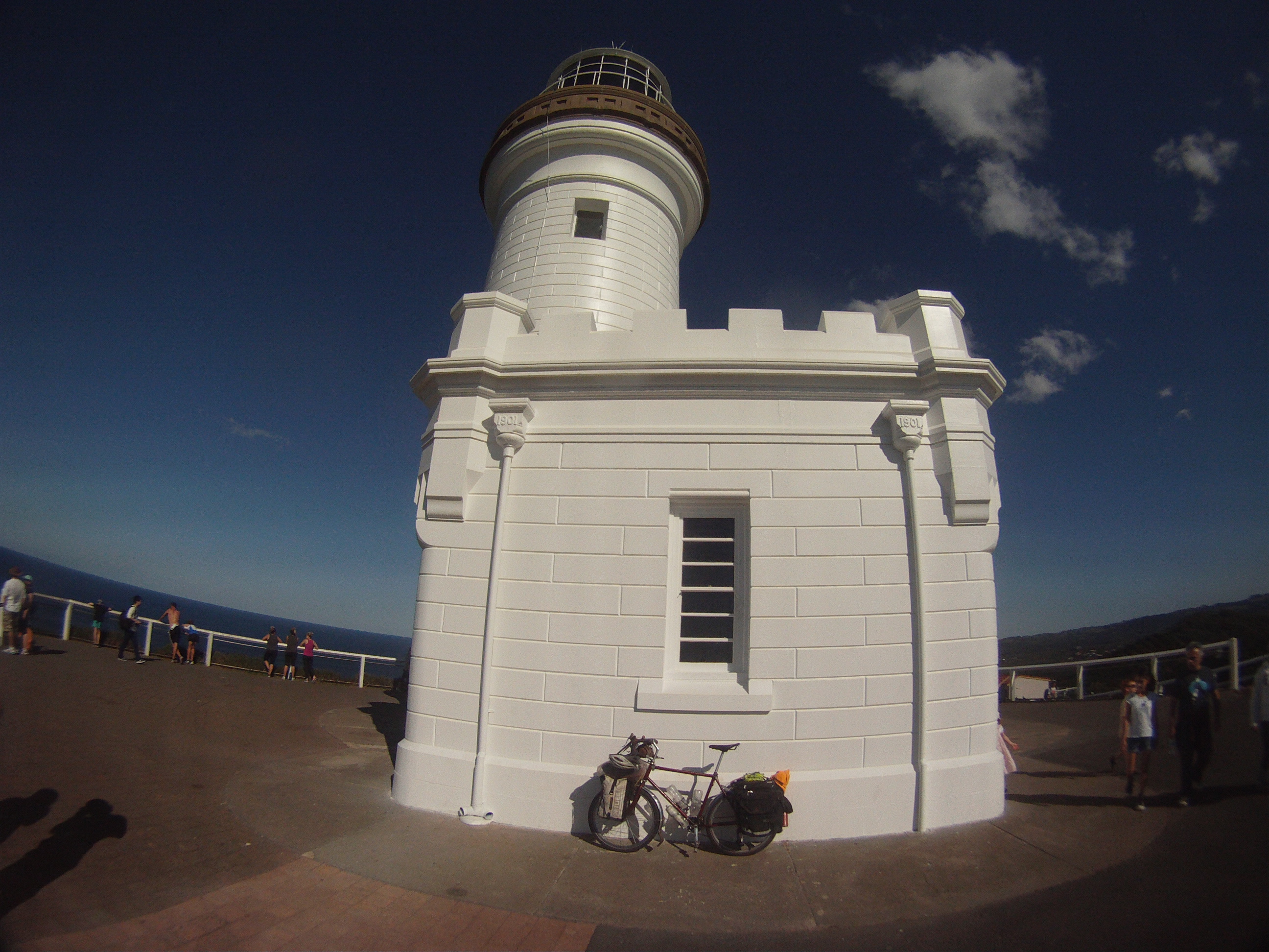 Gaby shines and climbs like a Billy Goat. Outside the historic monument, Byron Bay, NSW.